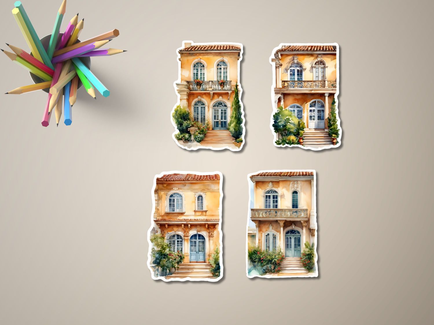 Dieses wunderschöne Sticker-Set besteht aus vier Motiven, die malerische toskanische Villen in ihrer ganzen Pracht darstellen. Mit den warmen Farbtönen und mediterranen Architekturelementen bringen diese Sticker den Charme Italiens in Ihre kreativen Projekte. Perfekt, um Planer, Notizbücher, Scrapbooks oder Alltagsgegenstände zu dekorieren und mit einem Hauch von Luxus und Nostalgie zu verschönern.