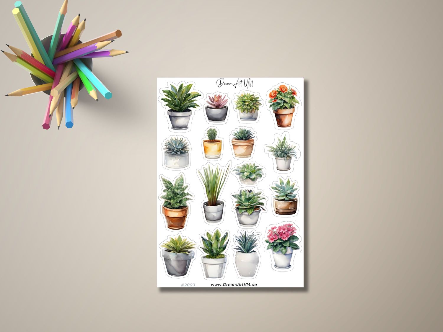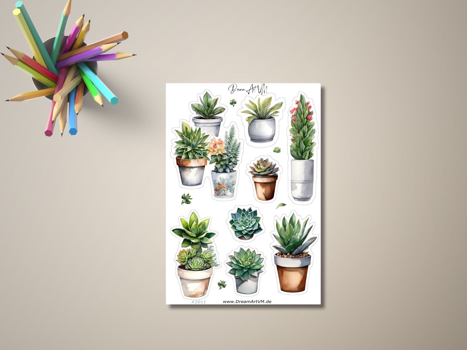 Das „4 Pflanzen Stickerbogen Bundle“ bringt die Frische und Ruhe von Zimmerpflanzen in Ihre kreativen Projekte. Mit einer Vielzahl an wunderschönen Topfpflanzen-Motiven, darunter Sukkulenten, Kakteen und blühende Pflanzen, ist dieses Set ideal, um Planer, Notizbücher, Scrapbooks oder Alltagsgegenstände stilvoll zu dekorieren. Diese detailreichen Sticker schaffen eine beruhigende und natürliche Atmosphäre in jedem Projekt.