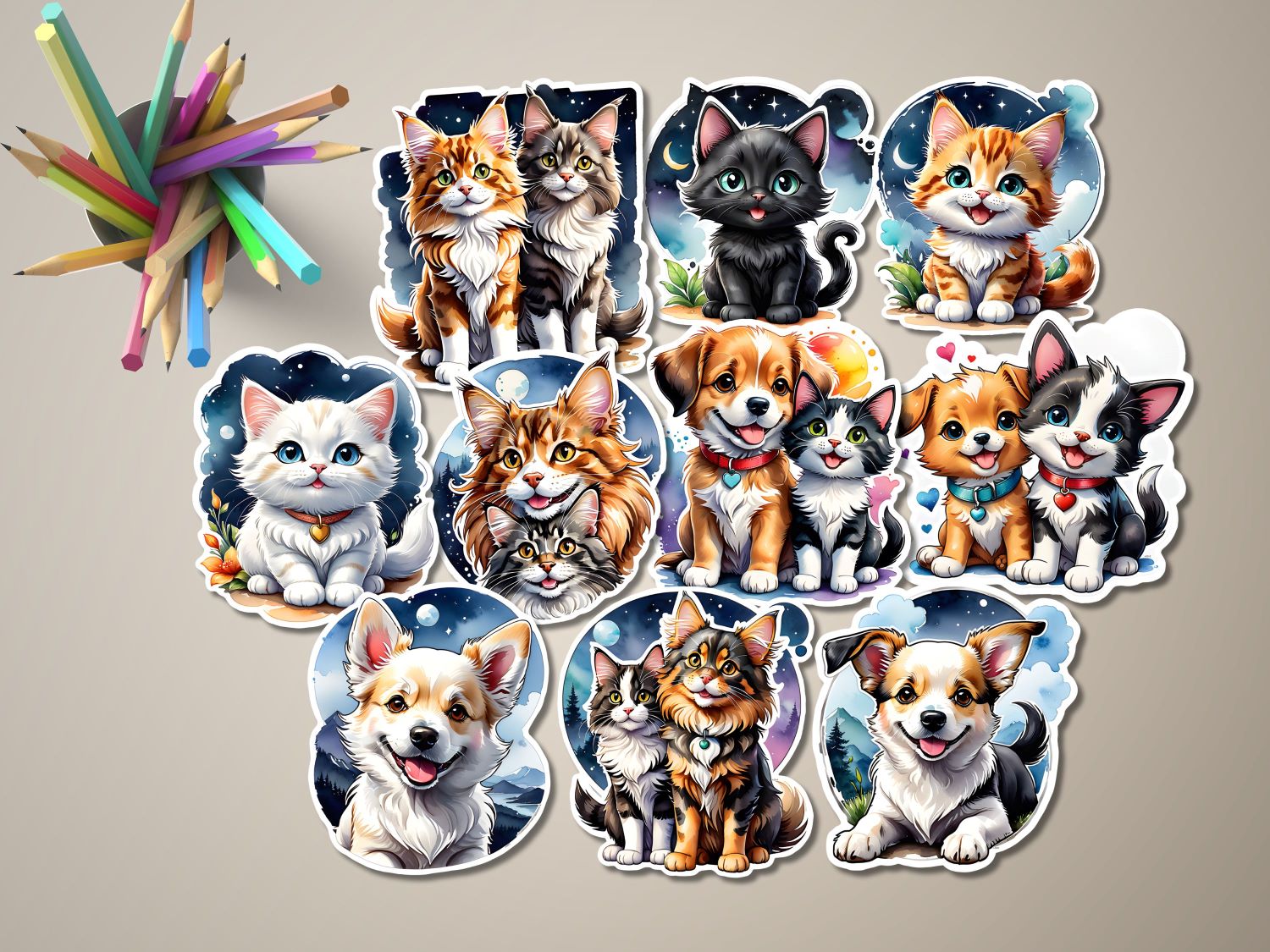 Das „9+1 Süße Katzen und Hunde“ Sticker Set enthält zehn entzückende Motive von Katzen und Hunden, die perfekt sind, um Planer, Notizbücher, Scrapbooks oder Alltagsgegenstände zu verschönern. Mit liebenswerten Illustrationen, die die niedlichsten Momente Ihrer pelzigen Freunde einfangen, bringt dieses Set Freude und Verspieltheit in Ihre kreativen Projekte. Perfekt für Tierliebhaber und alle, die niedliche Tiermotive mögen.