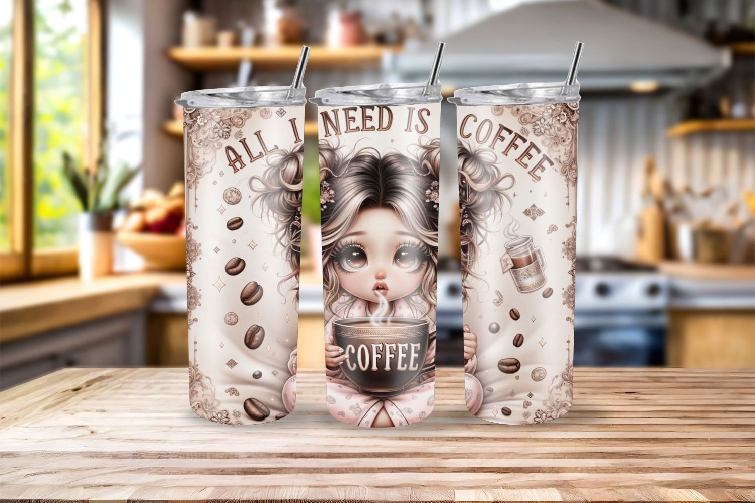 Dieser stilvolle Edelstahl-Thermobecher ist das perfekte Accessoire für Kaffeeliebhaber. Das kunstvolle Design mit einer niedlichen Illustration und dem Spruch „All I Need is Coffee“ bringt ein Lächeln in deinen Morgen. Mit einem Fassungsvermögen von 590 ml hält dieser Becher deinen Kaffee stundenlang heiß oder deine Erfrischungsgetränke angenehm kühl. Dank der langlebigen Edelstahlverarbeitung und des praktischen Deckels mit Strohhalm ist er ideal für unterwegs.