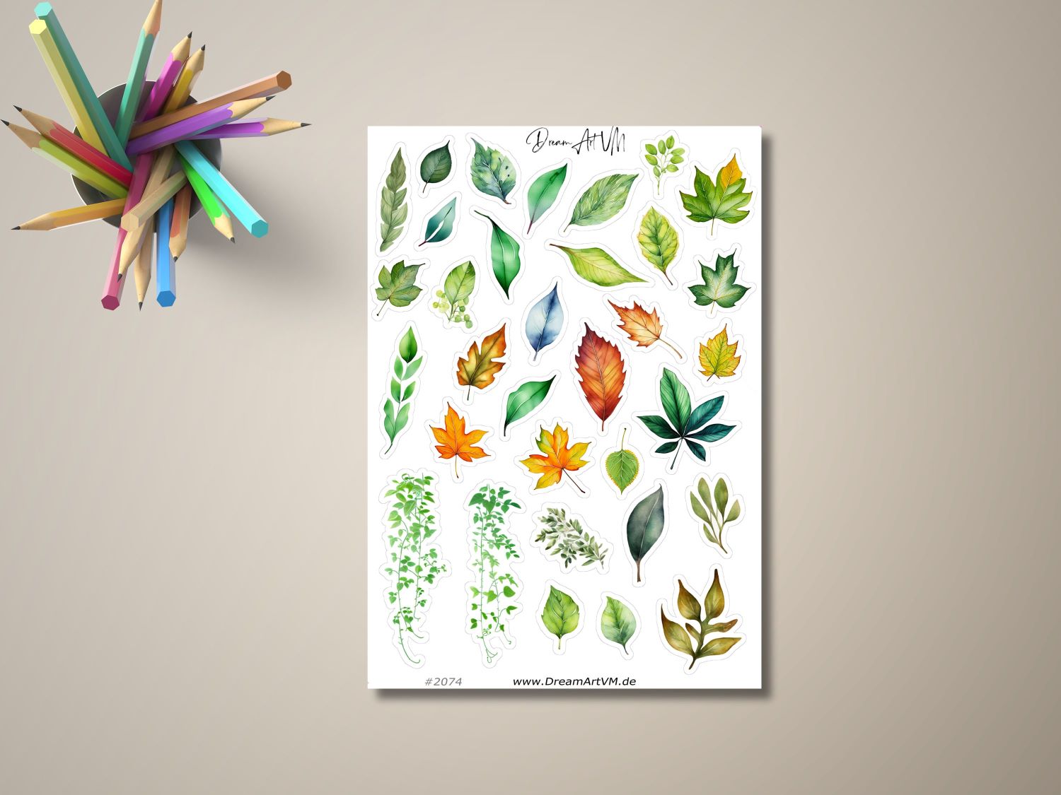 Der „Blättern von Bäumen und Pflanzen Aufkleberbogen“ bringt die Vielfalt der Natur direkt in Ihre kreativen Projekte. Mit liebevoll illustrierten Blättern in verschiedenen Formen und Farben – von frischen Grüntönen bis hin zu herbstlichen Nuancen – ist dieser Stickerbogen ideal, um Planer, Notizbücher, Scrapbooks oder Dekorationen im Naturstil zu verschönern. Diese naturgetreuen Motive verleihen jedem Projekt eine organische, frische und lebendige Note, perfekt für Naturliebhaber und Kreative, die die Schönheit der Pflanzenwelt schätzen.