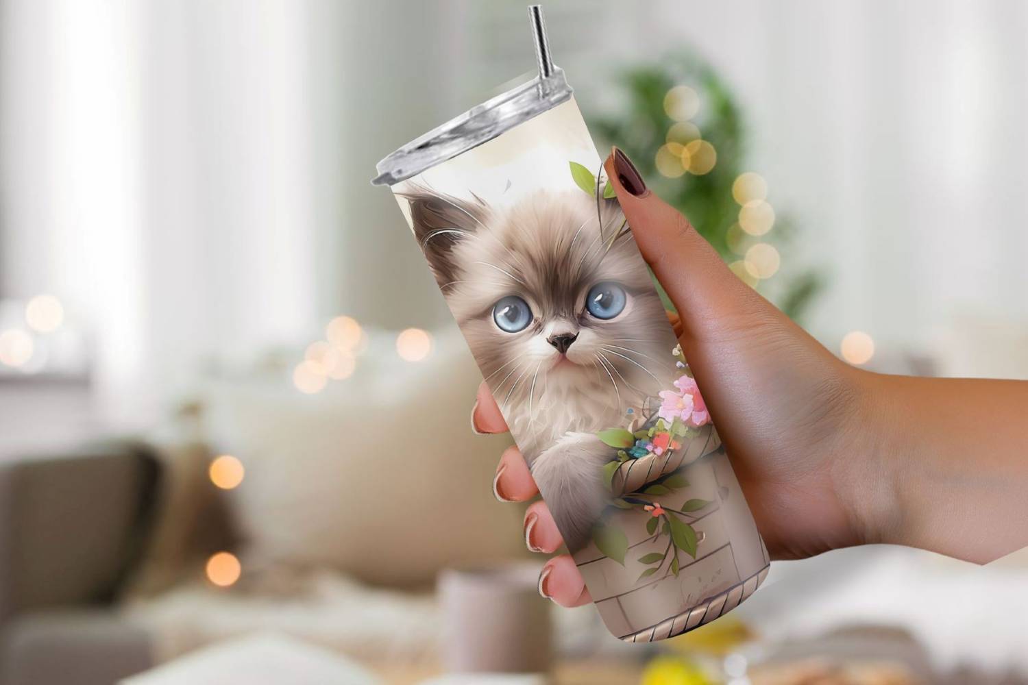 Der Thermobecher „Blauäugiges Kätzchen“ vereint Niedlichkeit und Funktionalität. Mit einem bezaubernden Motiv eines flauschigen Kätzchens in einem Korb, umgeben von Blumen, ist dieser Becher ein Must-have für Katzenliebhaber. Hergestellt aus hochwertigem Edelstahl, sorgt die doppelwandige Isolierung dafür, dass Ihre Getränke lange heiß oder kalt bleiben. Mit einem Fassungsvermögen von 590 ml ist dieser Becher perfekt für den täglichen Gebrauch und für unterwegs.