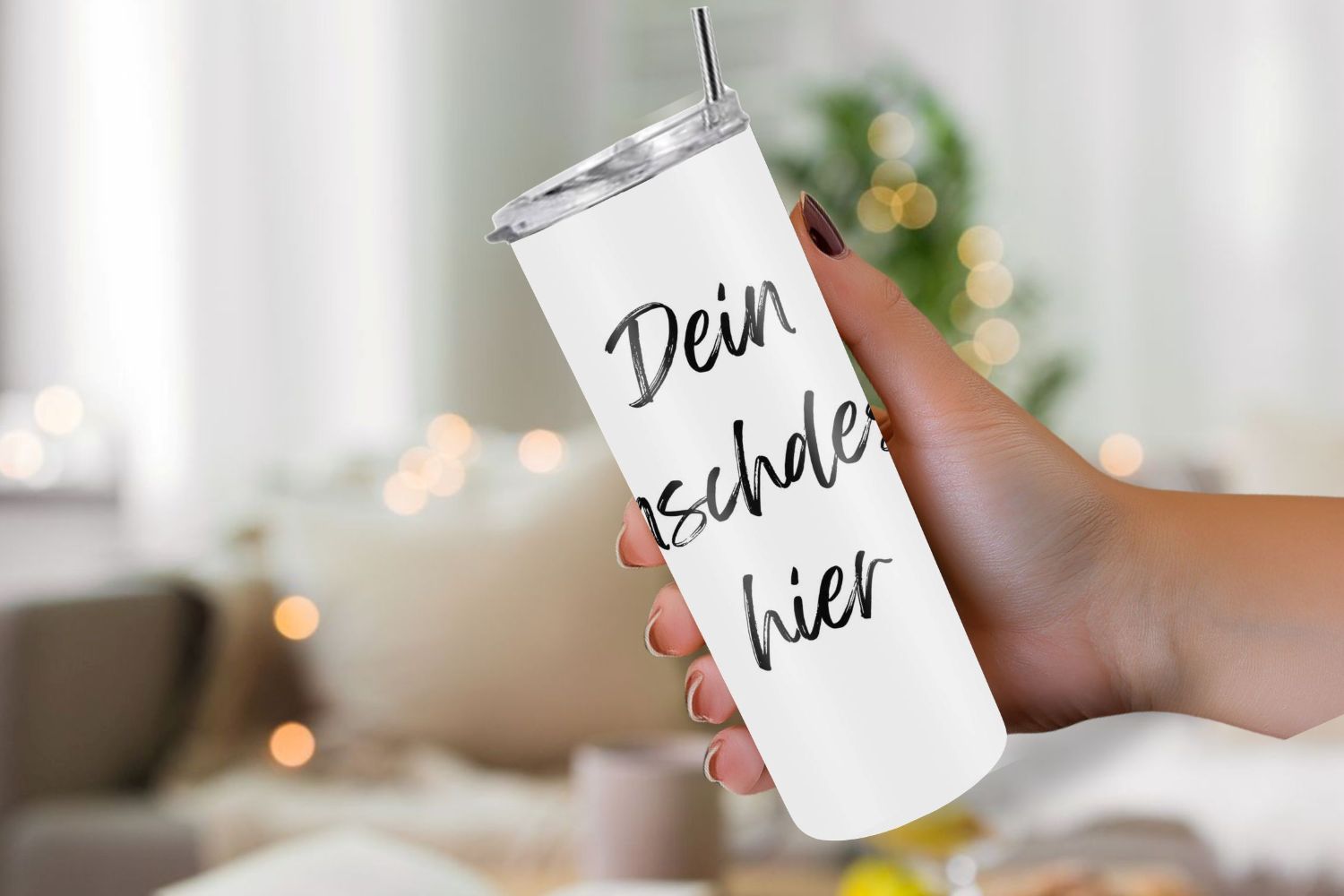 Gestalte deinen eigenen personalisierten Thermobecher! Dieser Edelstahl-Thermobecher hält deine Getränke stundenlang warm oder kalt und ist die perfekte Wahl für unterwegs. Mit einem Füllvolumen von 590 ml bietet er genug Platz für deinen Kaffee, Tee oder Smoothie. Du kannst dein Wunschdesign auf den Becher drucken lassen – ideal als Geschenk oder für den persönlichen Gebrauch. Dank des Deckels mit Trinköffnung und beiliegendem Strohhalm ist er praktisch und vielseitig einsetzbar.