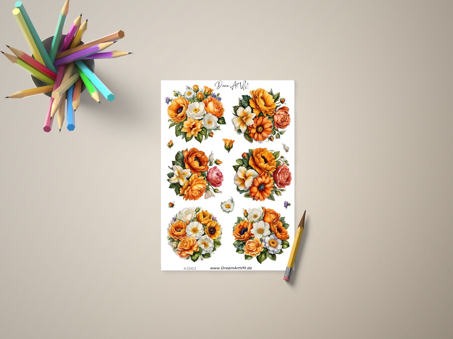Erleben Sie den Glanz des Sommers mit unserem „Sonnenblumen Sticker Sheet“. Diese detailreichen Sticker zeigen die warme Schönheit von Sonnenblumen und anderen bunten Blüten. Perfekt für Ihre kreativen Projekte wie Planer, Scrapbooking, Karten und DIY-Dekorationen, bringen sie Sonnenschein in jeden Moment.