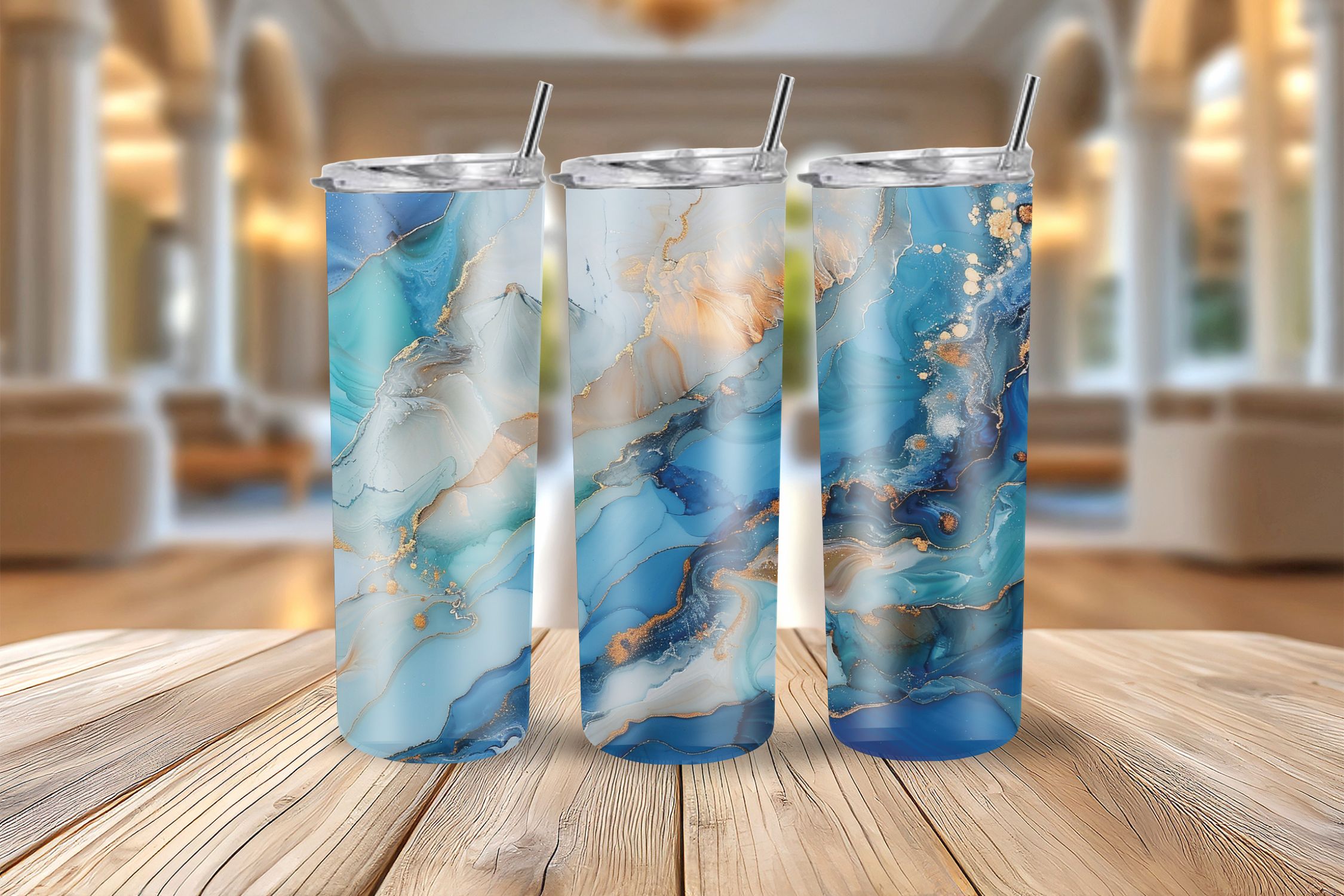 Bringen Sie die Ruhe und Schönheit des Ozeans in Ihren Alltag mit unserem Thermobecher, der ein faszinierendes abstraktes Ozean-Design in Blau-, Türkis- und Goldtönen zeigt. Dieser doppelwandige Becher hält Ihre Getränke stundenlang heiß oder kalt und vereint Eleganz mit Funktionalität. Perfekt für unterwegs, im Büro oder zu Hause, ist er ein idealer Begleiter für alle, die Stil und Qualität schätzen.