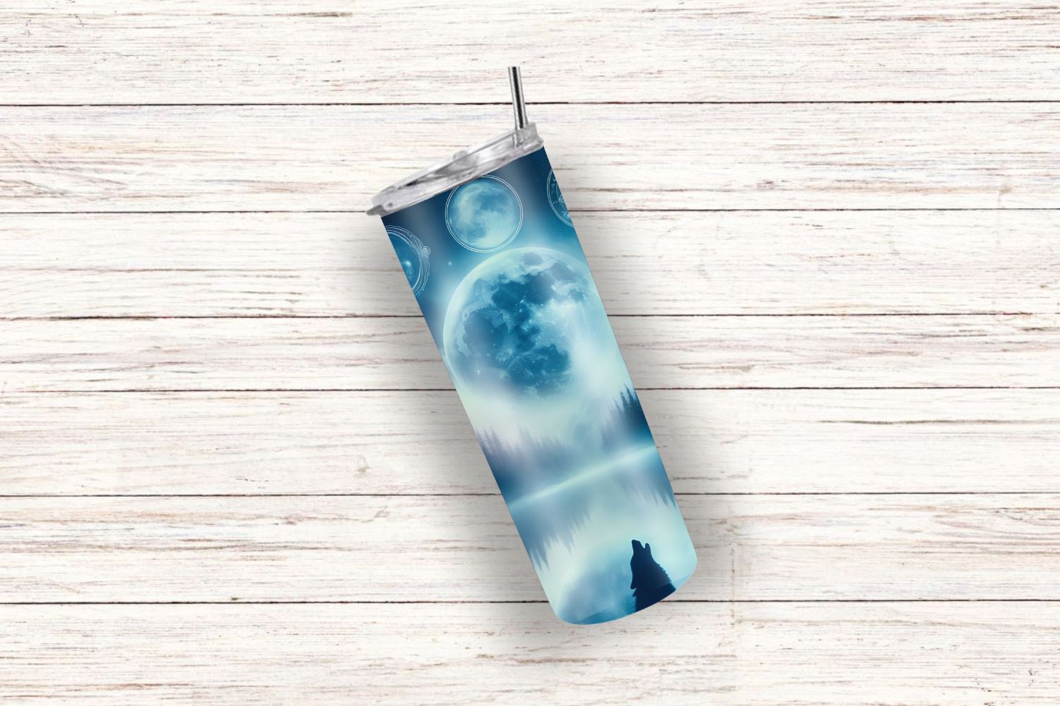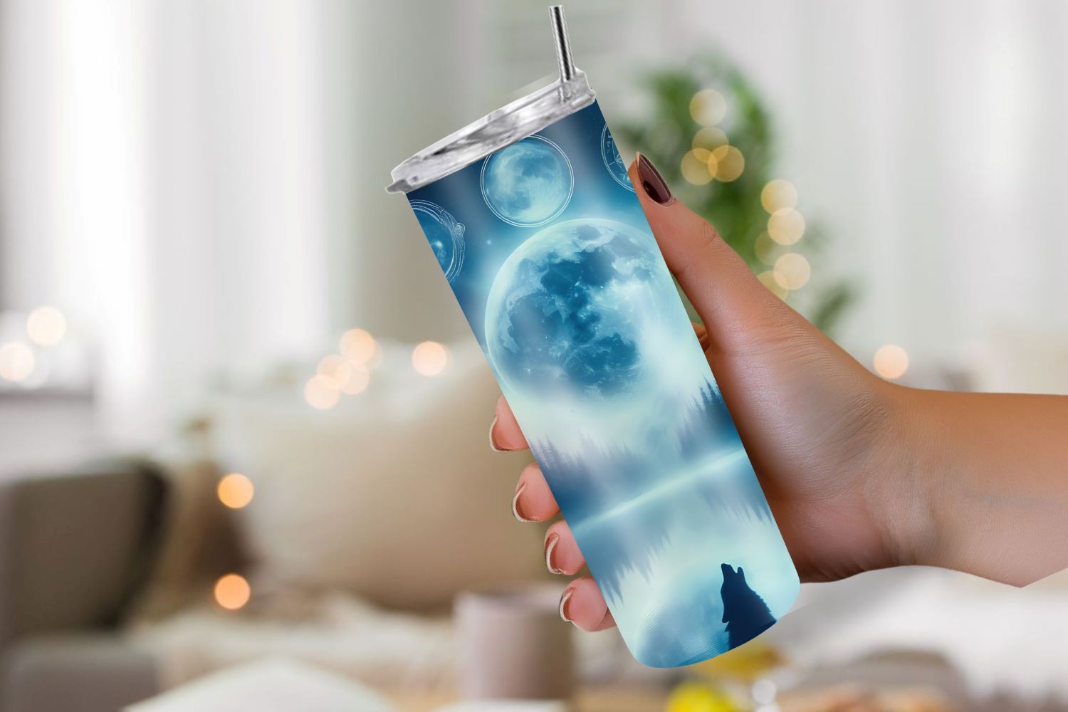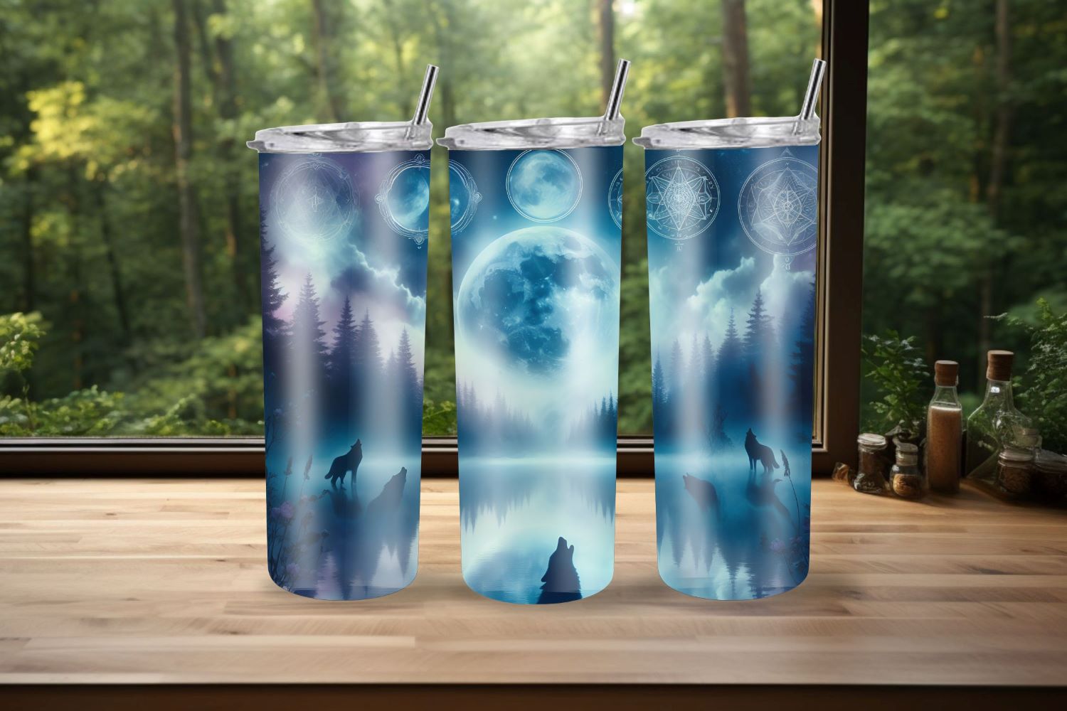 Dieser atemberaubende Thermobecher zeigt ein bezauberndes Design mit Wölfen, die den Vollmond anheulen, umgeben von einem nebligen Wald und mystischen Symbolen. Der Thermobecher fasst 590 ml und besteht aus doppelwandigem Edelstahl, wodurch er deine Getränke den ganzen Tag lang warm oder kalt hält. Perfekt für Naturliebhaber und alle, die mystische Designs lieben!
