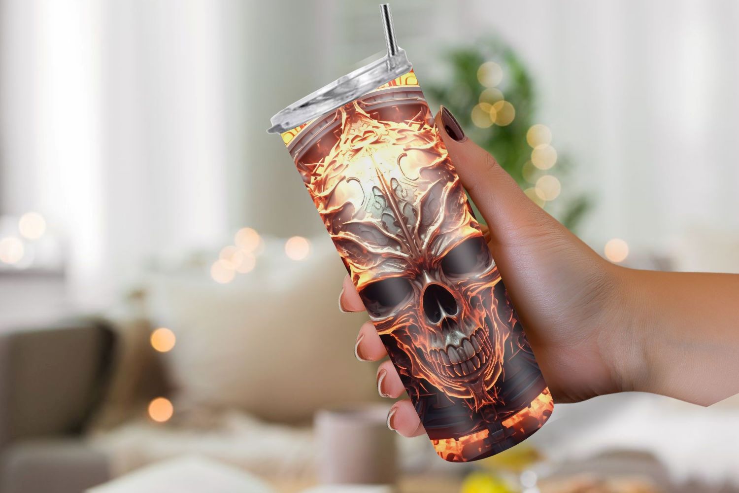 Dieser beeindruckende Thermobecher „Flammen des Schädels“ ist für diejenigen, die ein kraftvolles Statement setzen wollen. Mit seinem atemberaubenden Design eines brennenden Schädels, umgeben von Flammen und metallischen Details, verkörpert dieser Becher Stärke und Mut. Gefertigt aus hochwertigem, doppelwandigem Edelstahl, hält der Becher Ihre Getränke lange heiß oder kalt. Mit einem Fassungsvermögen von 590 ml bietet er genug Platz für Ihren Kaffee, Tee oder Kaltgetränk und sorgt dafür, dass Sie den Tag energiegeladen beginnen können.